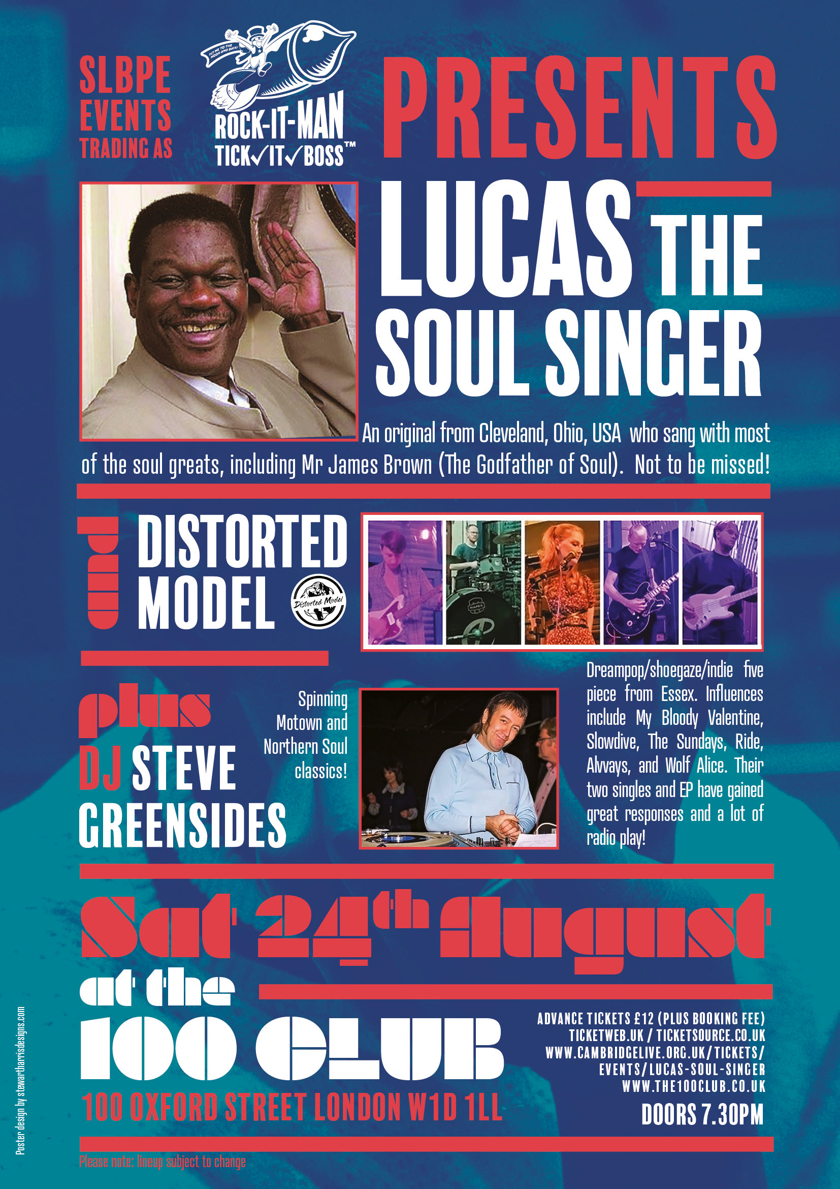Logo in context on this poster for Lucas at the 100 Club